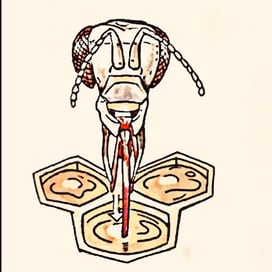 Die Biene sammelt kein Honig, sondern saugt Nektar mit Ihrem Rüssel von Pflanzen in den Saftdrüsen, (Nektarien) der ausgeschieden wird.