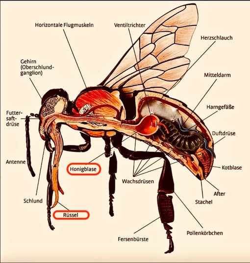 und lagert den gesammelten Nektar und Honigtau in Ihrer Honigblase die etwa 45 mg. Nektar fasst.